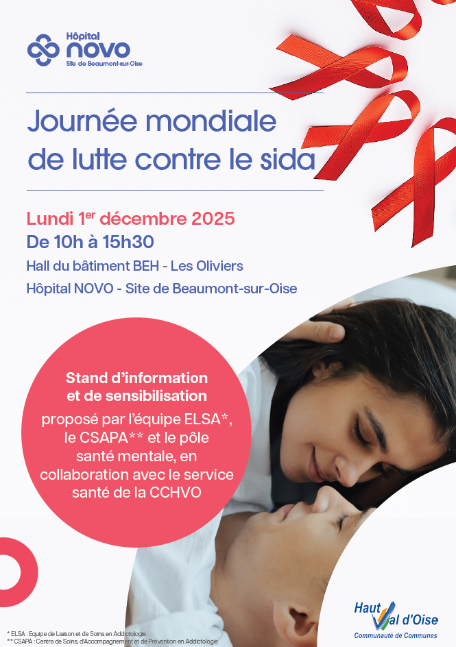 Lundi 1er décembre de 10h à 15h30 dans le hall du bâtiment BEH (Les Oliviers) : stand d’information et de sensibilisation proposé par l’équipe ELSA, le CSAPA et le pôle santé mentale, en collaboration avec le service santé de la CCHVO.