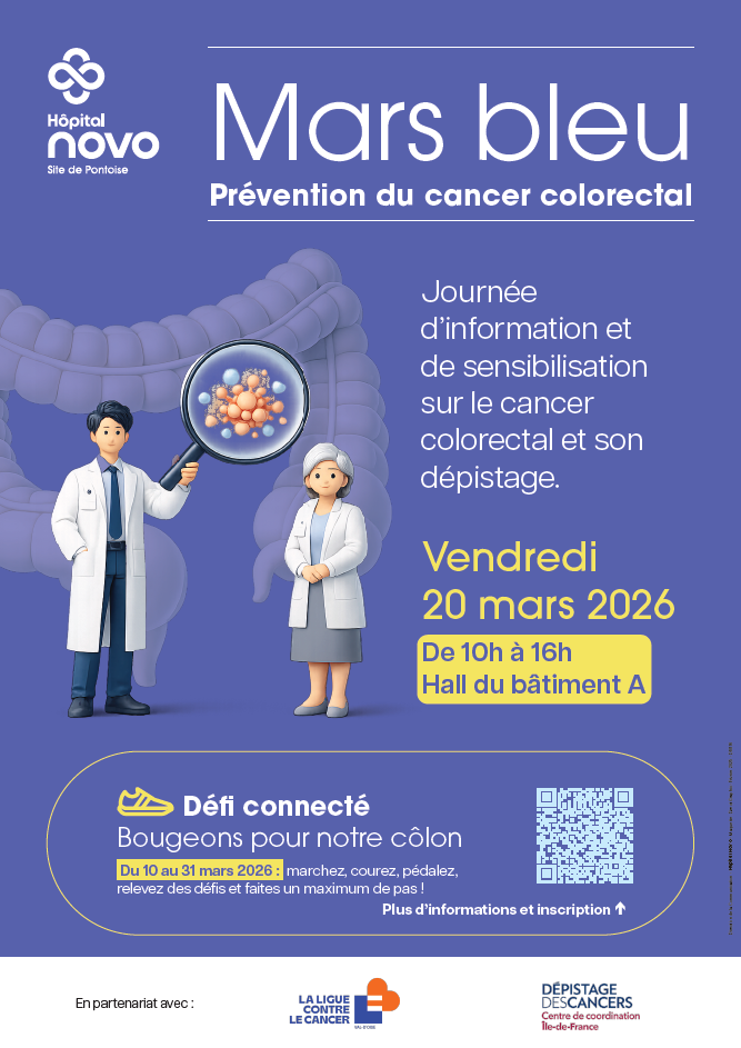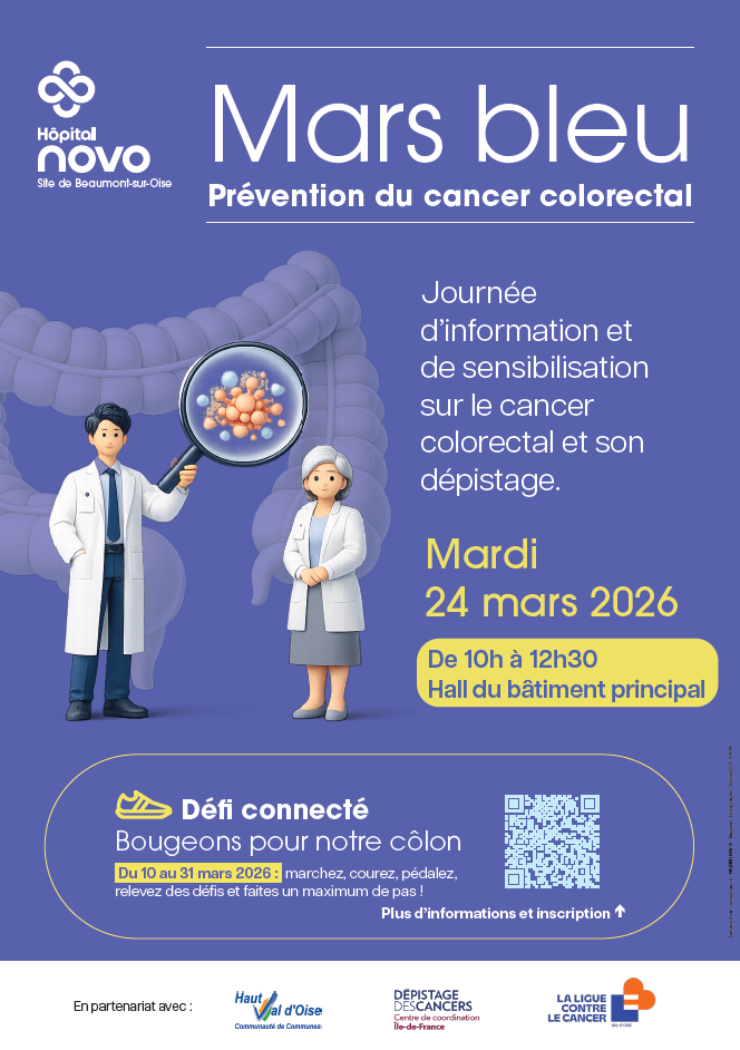 Pour mars bleu, mois dédié à la prévention du cancer colorectal, des journées d'information et de sensibilisation sont organisées sur les sites de Pontoise et de Beaumont-sur-Oise.