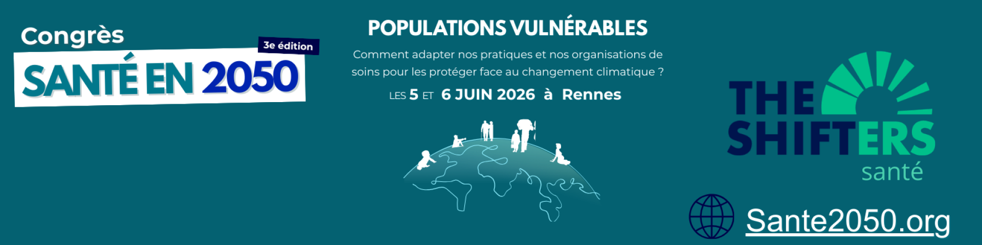 Pour répondre à ces enjeux, l’association The Shifters organise la 3ᵉ édition du congrès scientifique Santé en 2050 à Rennes les 5 et 6 juin 2026. Cet événement réunira des professionnels de santé et des experts scientifiques autour de cette question :